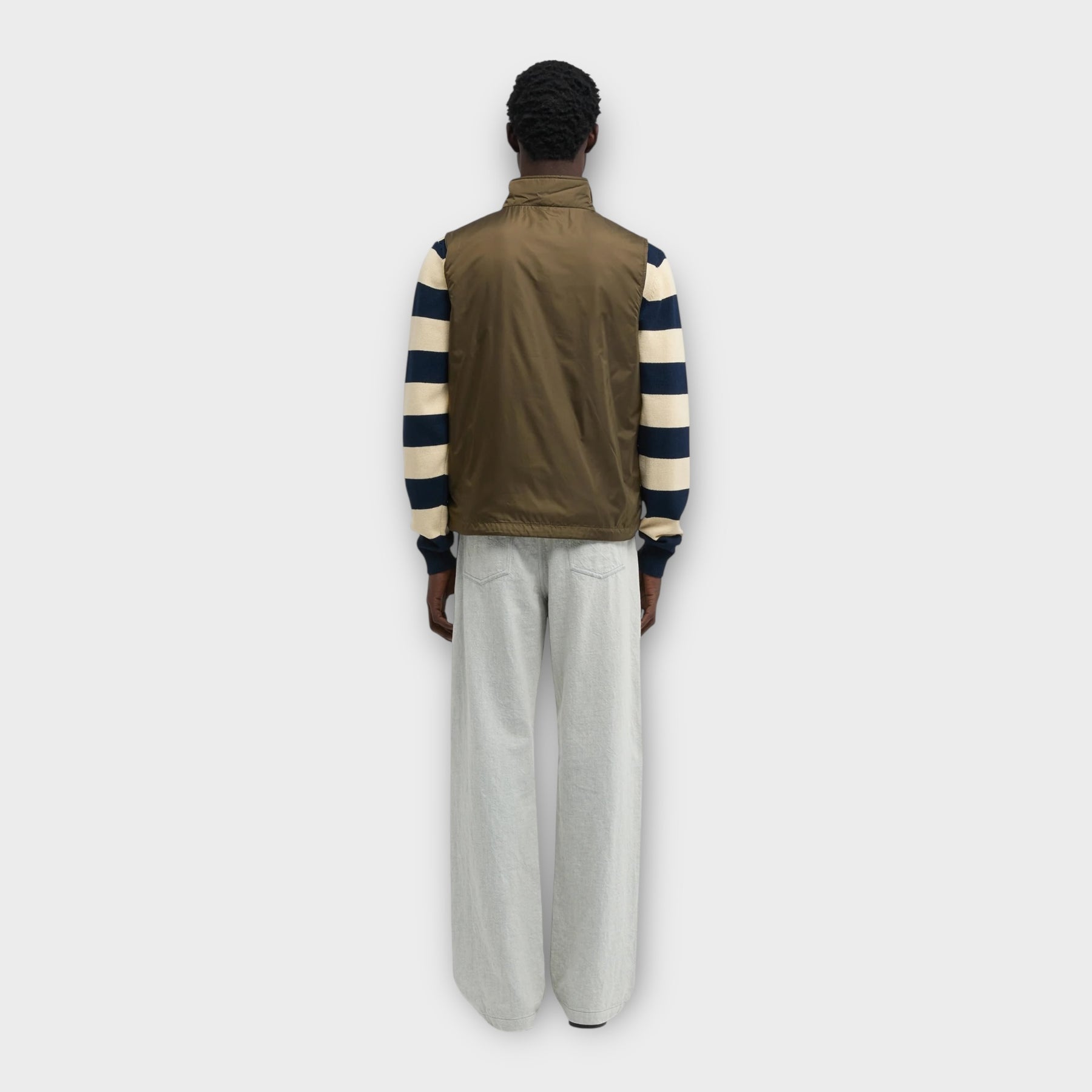 Aspesi Vernes Gilet i Military er en let og funktionel vest med et minimalistisk, italiensk udtryk. Vesten er fremstillet i slidstærkt nylon og designet til lag-på-lag, hvilket gør den ideel til overgangssæsonerne. Et tidløst valg, der fungerer lige godt over en skjorte, strik eller hoodie.
