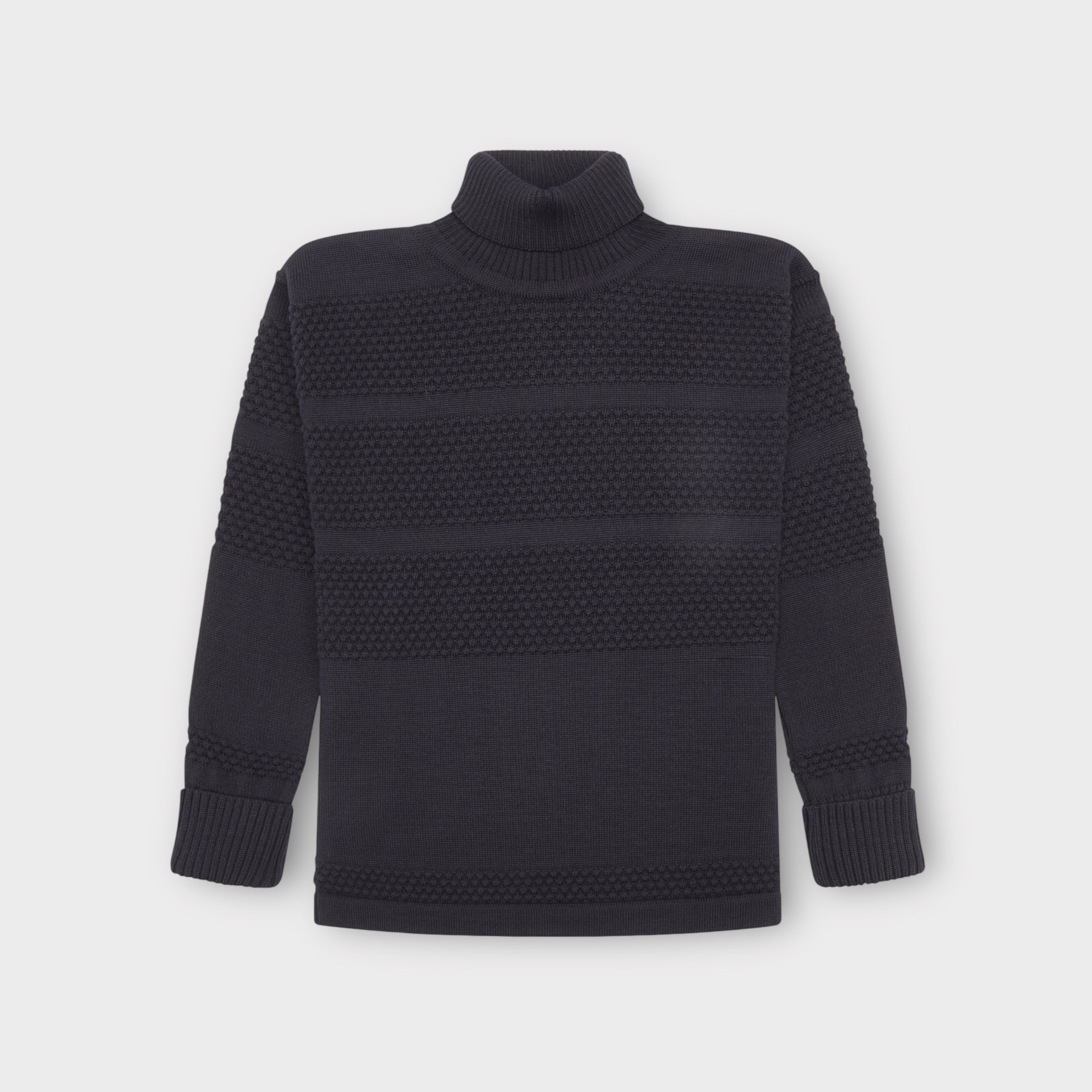 S.N.S. Herning Fisherman Sweater i navy er den ikoniske sømandstrøje, som har været en fast del af den danske herregarderobe siden 1920’erne. Sweateren er strikket i 100% ren, ny uld og kendetegnes af den teksturerede struktur med de karakteristiske "bobler", der både giver et unikt udtryk og ekstra holdbarhed.