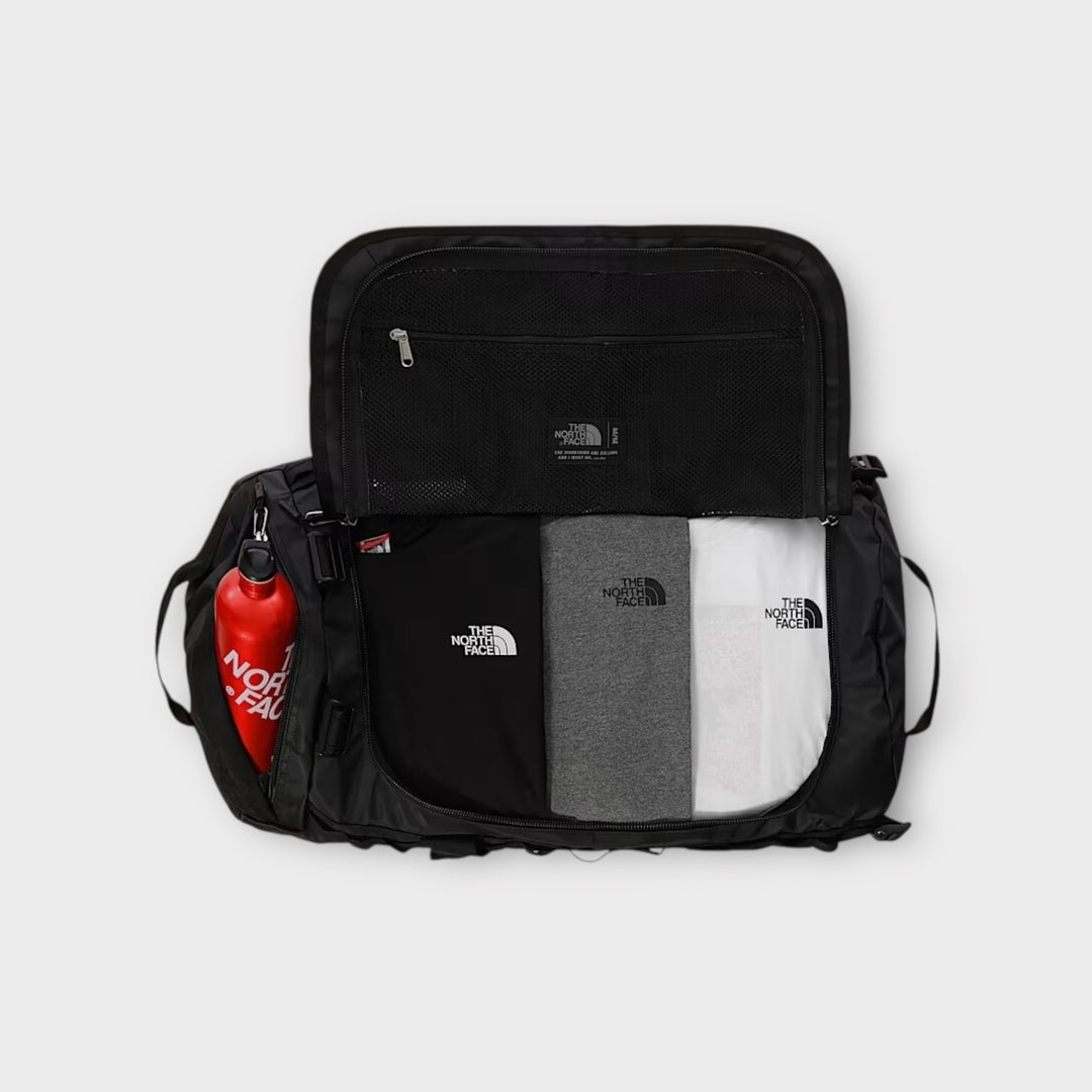 Robust og rummelig – The North Face Base Camp Duffel Bag i sort er en favorit til både rejser og hverdag. Med en volumen på 71 liter og vandafvisende materiale er den klar til alle eventyr, store som små.